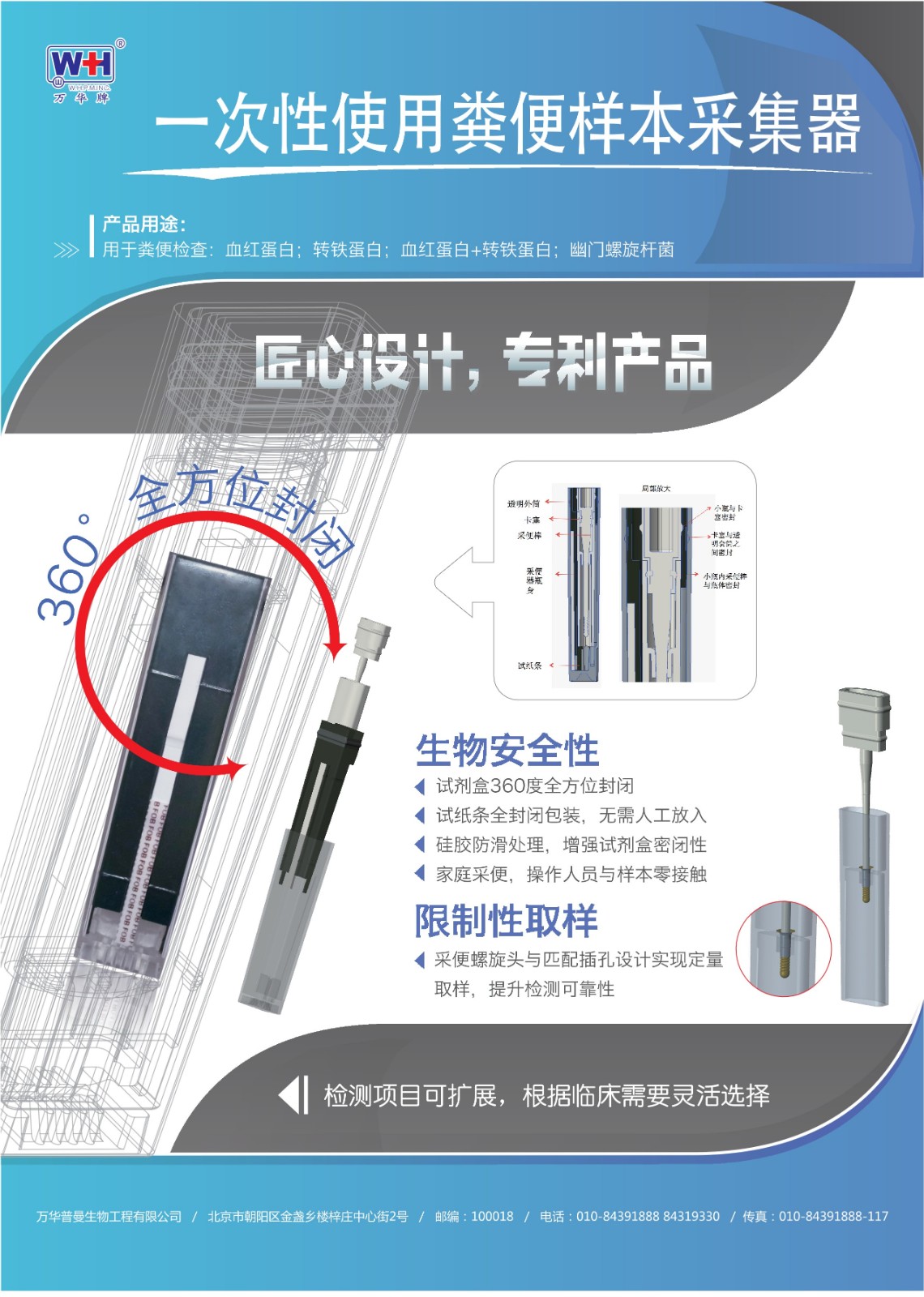 試劑盒360度全方位封閉;試紙條全封閉包裝,無需人工放入;硅膠防滑處理,增強試劑盒密閉性;家庭采便,操作人員與樣品零接觸。
